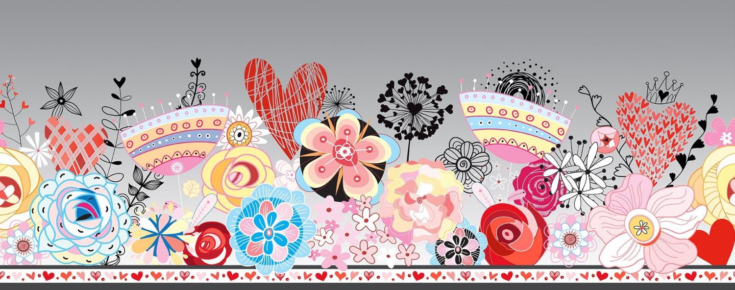 The Alice fabric collection from In the Beginning Fabrics is an enchanting wonderland of color. Lively florals, teacups, hearts, and playful motifs dance together in a lively mix of pastels, brights, and bold black accents. The designs give the storybook images a modern touch. Perfect for quilts, bags and home dec projects. 100% cotton, 44/45" wide.