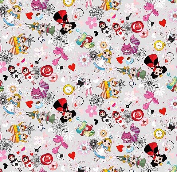 The Alice fabric collection from In the Beginning Fabrics is an enchanting wonderland of color. Lively florals, teacups, hearts, and playful motifs dance together in a lively mix of pastels, brights, and bold black accents. The designs give the storybook images a modern touch. Perfect for quilts, bags and home dec projects. 100% cotton, 44/45" wide.