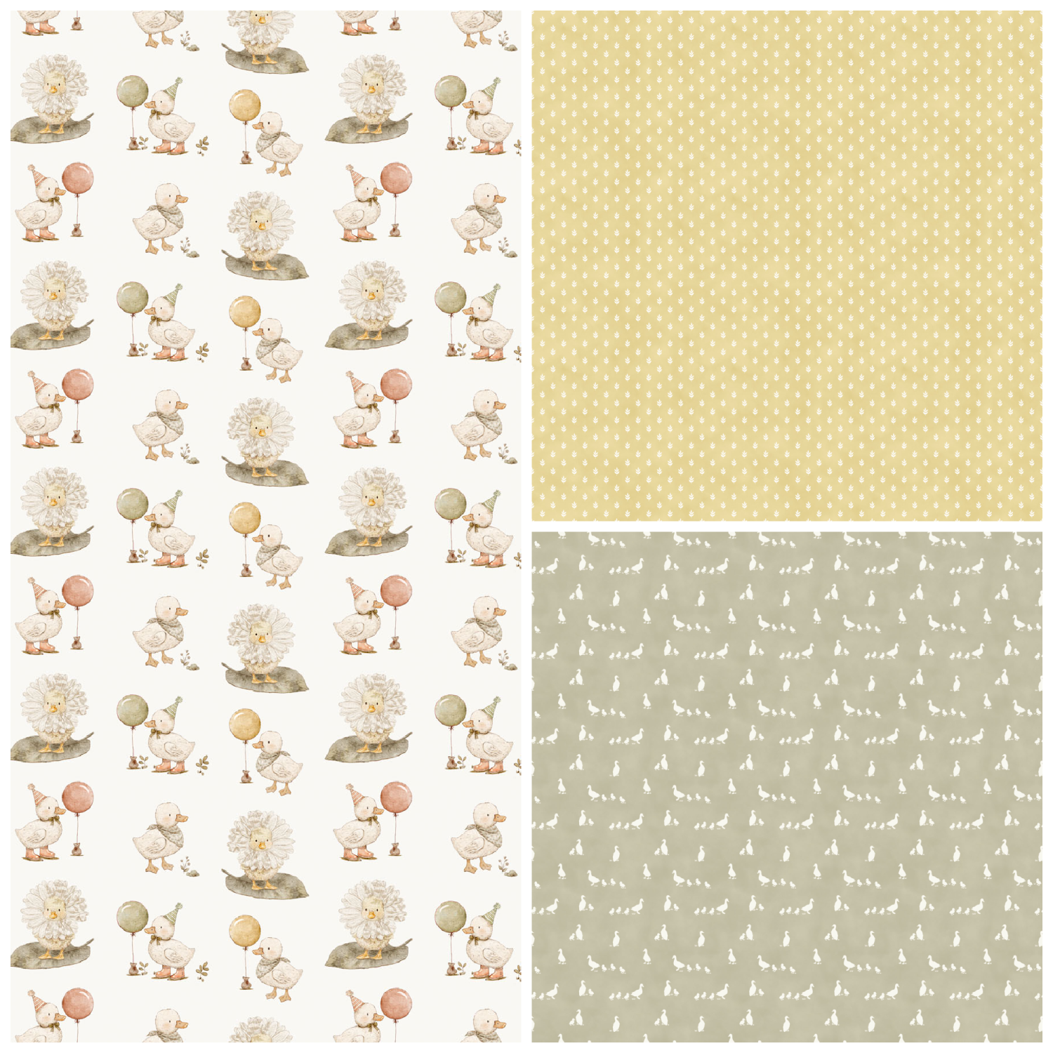 Soft and whimsical, this children’s fabric collection features a soothing palette of warm neutrals. Playful ducklings are at the heart of the designs, paired with delicate florals, hand-drawn ducks, gentle polka dots, and classic stripes. With a nostalgic, storybook-inspired feel, the collection brings warmth, comfort, and quiet charm to children’s projects and spaces. 44 - 45 " width, 100% Cotton