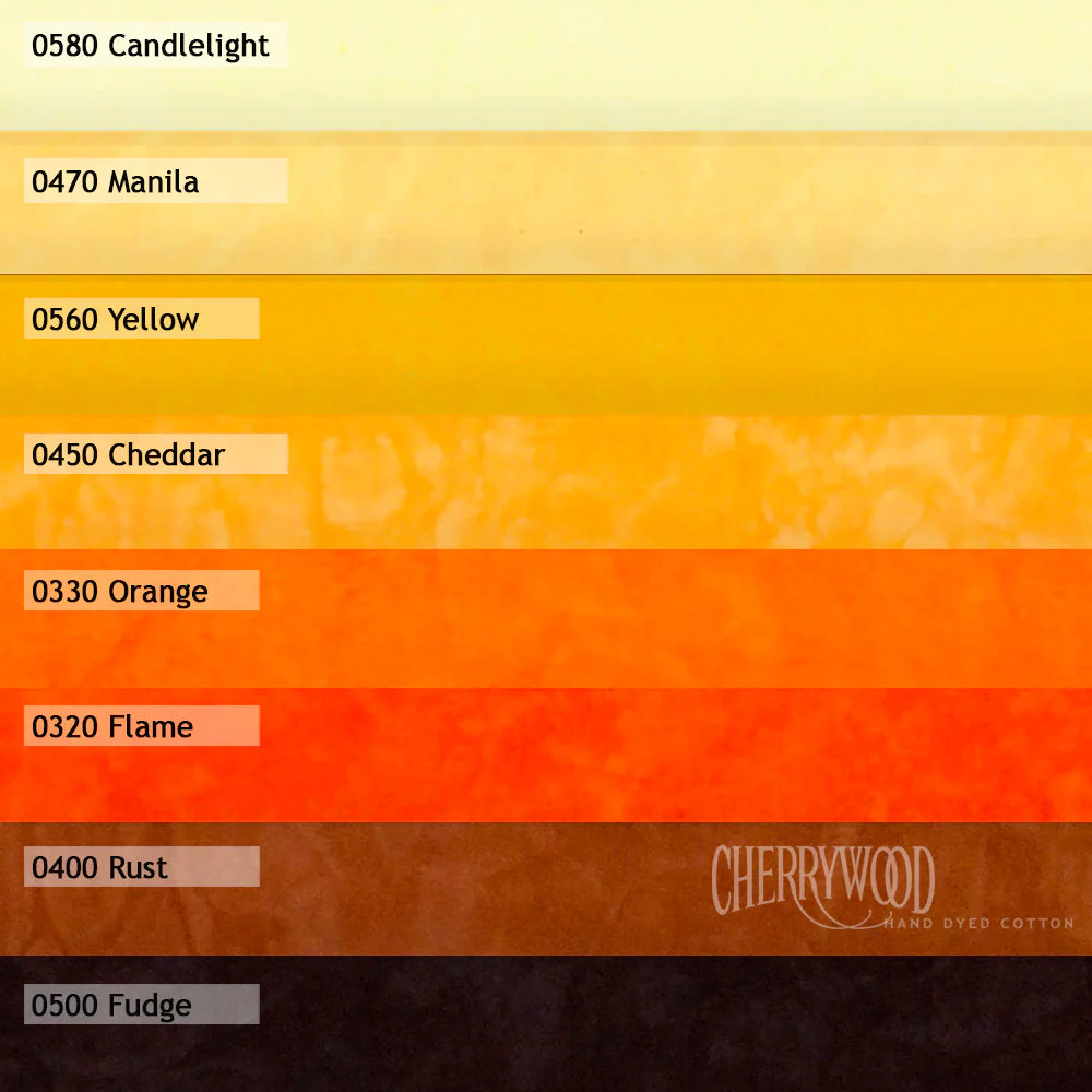 Cherrywood celebrates the colors of autumn with the Woodland Garden collection. The group features sixteen luscious Cherrywood hand-dyed fabrics and two new eight piece bundles.