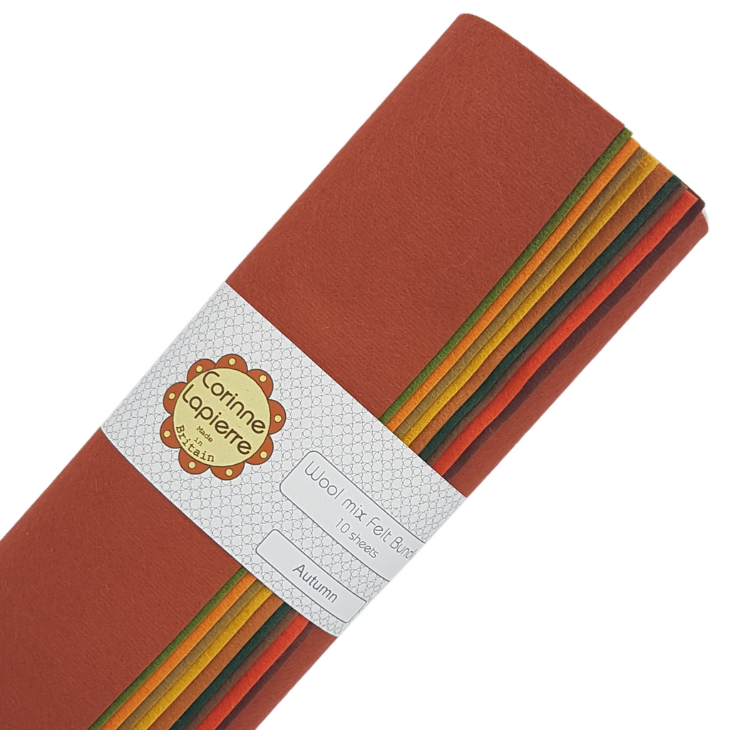 British-made Wool Felt bundles curated by embroiderer Corinne Lapierre. Each bundle contains ten 9" coordinated squares. This easy-to-use wool felt is the perfect mix (45% wool, 55% viscose) for wool felt and embroidery projects.